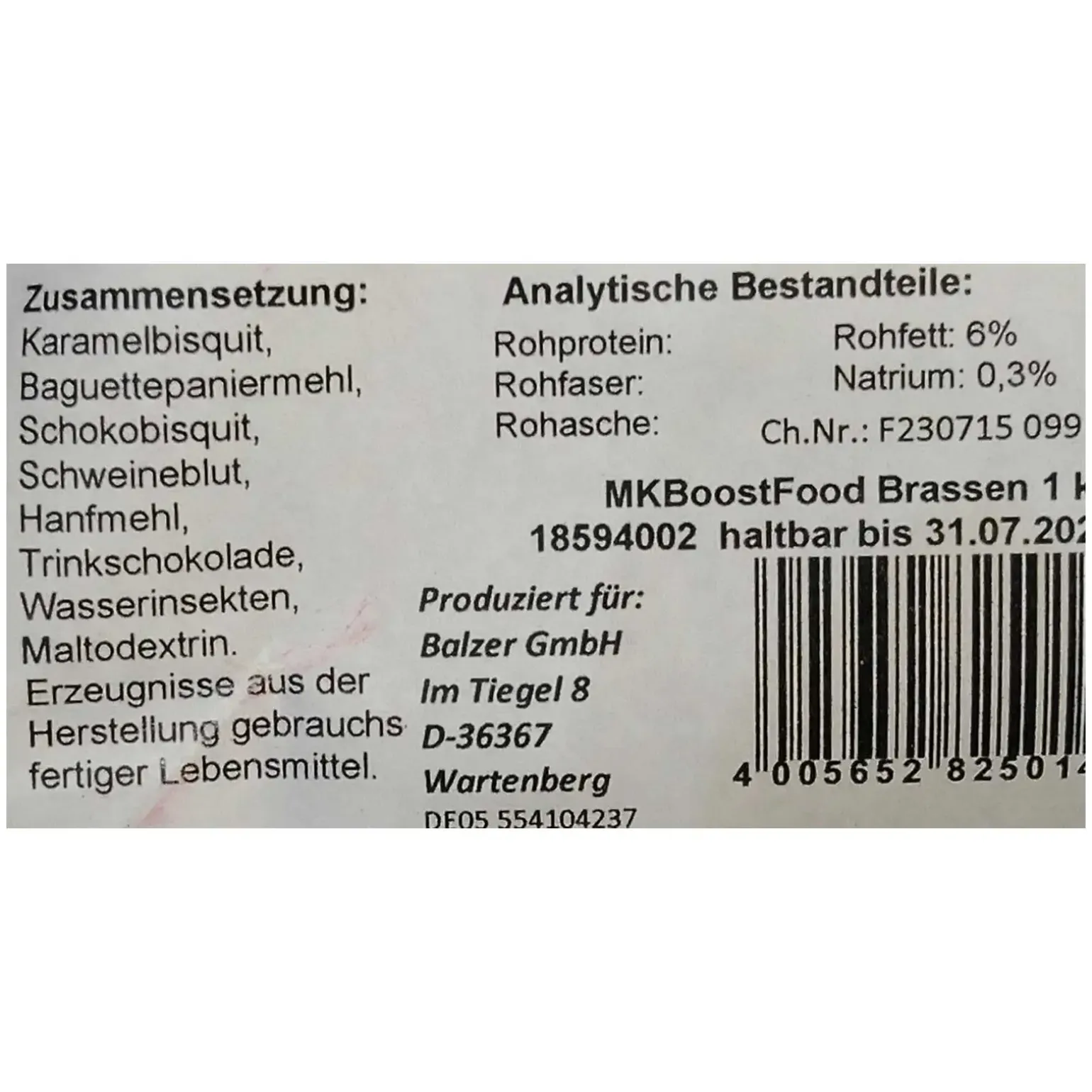 BRASSE: Süßes Futter mit Karamellnote und hohen Blutmehlanteil wie Brassen es besonders lieben.
