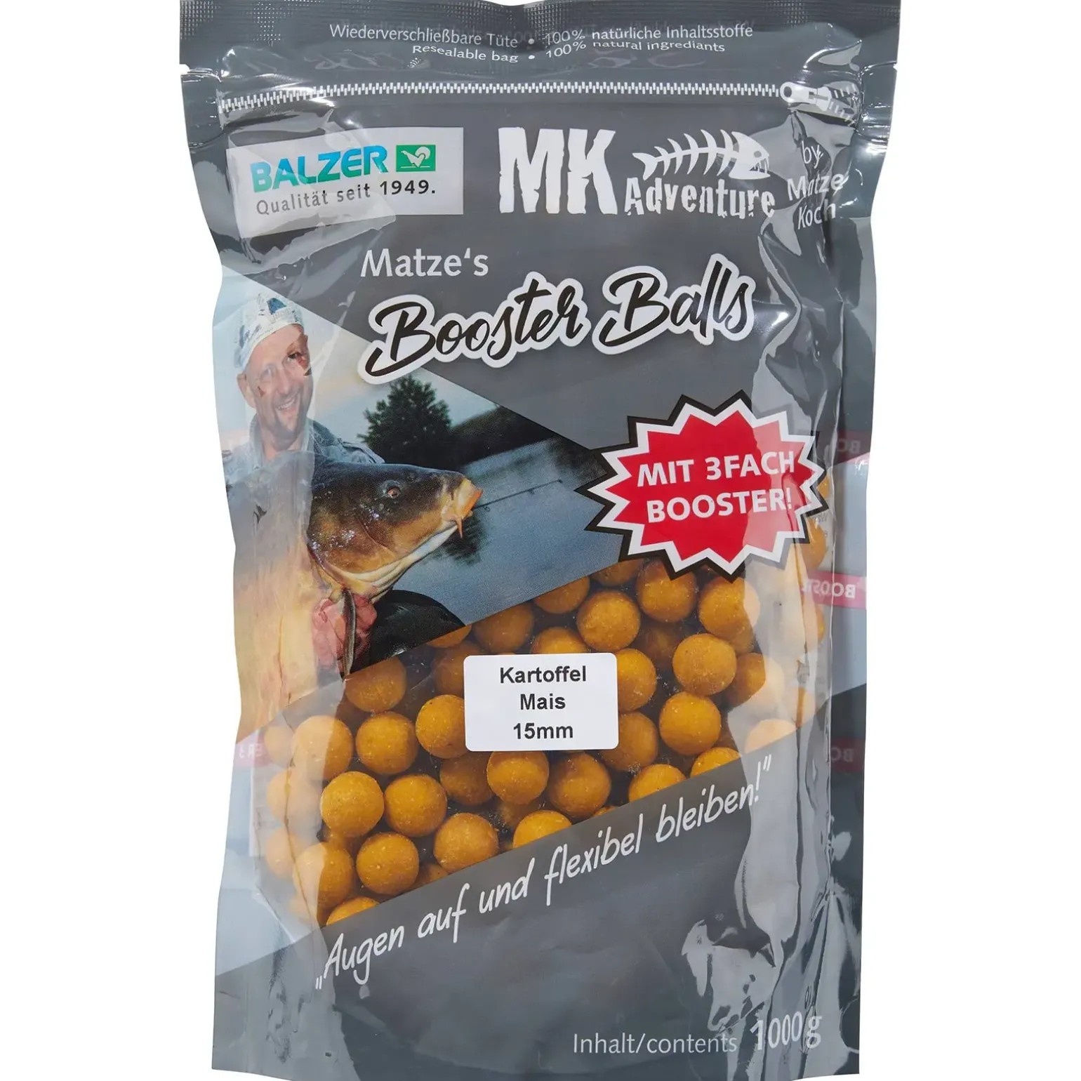 Die Matze Koch Booster Balls Boilies kommen mit völlig neuen Eigenschaften daher. Sie haben die Eigenschaft, die wertvollen Inhaltsstoffe der Proteinkugeln noch schneller ans Wasser abzugeben.