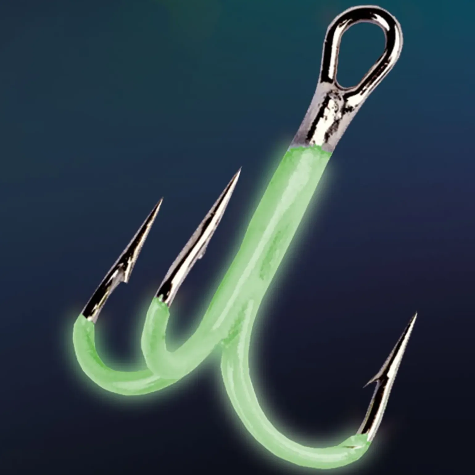 Die eXtreme POWER Drillingshaken haben am Schenkel eine selbstleuchtende Lackierung, die dem Haken eine hohe Lockwirkung verleiht.