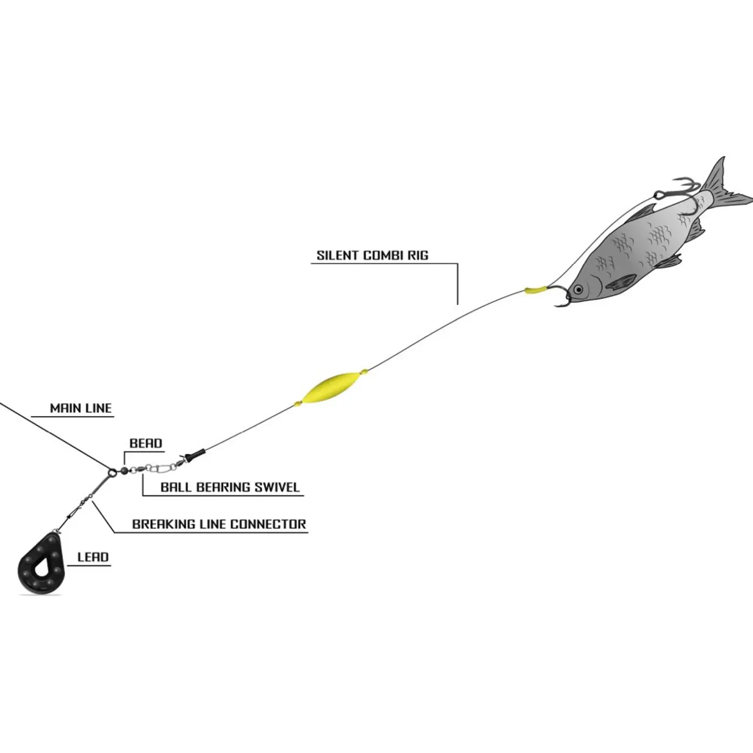 Das Black Cat Silent Combi Rig Waller Spezial Fertigvorfach eignet sich hervorragend für die Präsentation von Köderfischen und anderen Naturködern knapp über Gund an stark beangelten Gewässern.
