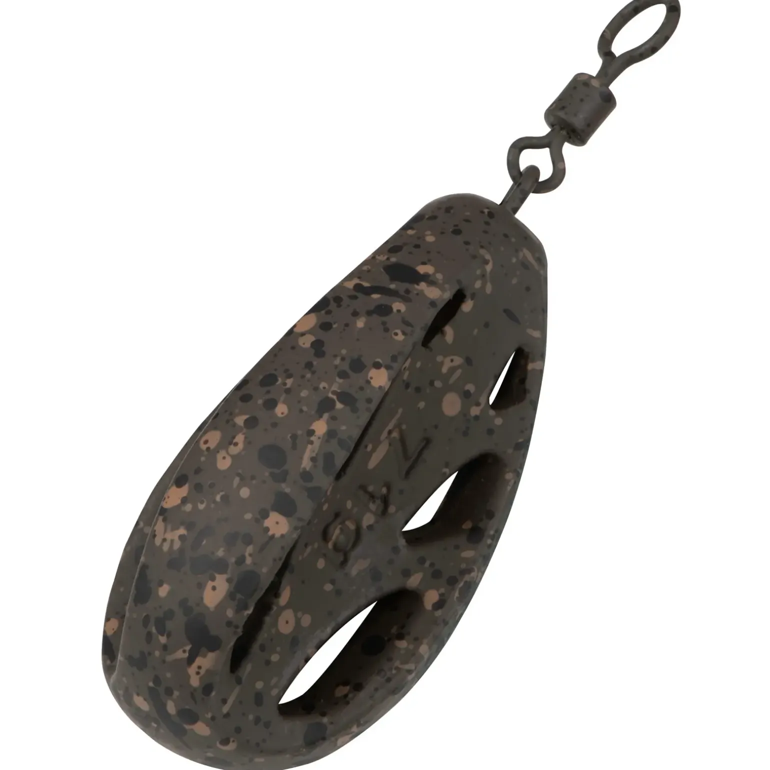 Die gummierte nicht reflektierende Camouflage-Oberfläche tarnt das Fox Edges Swivel Paste Bomb Karpfenblei zuverlässig am Gewässergrund.