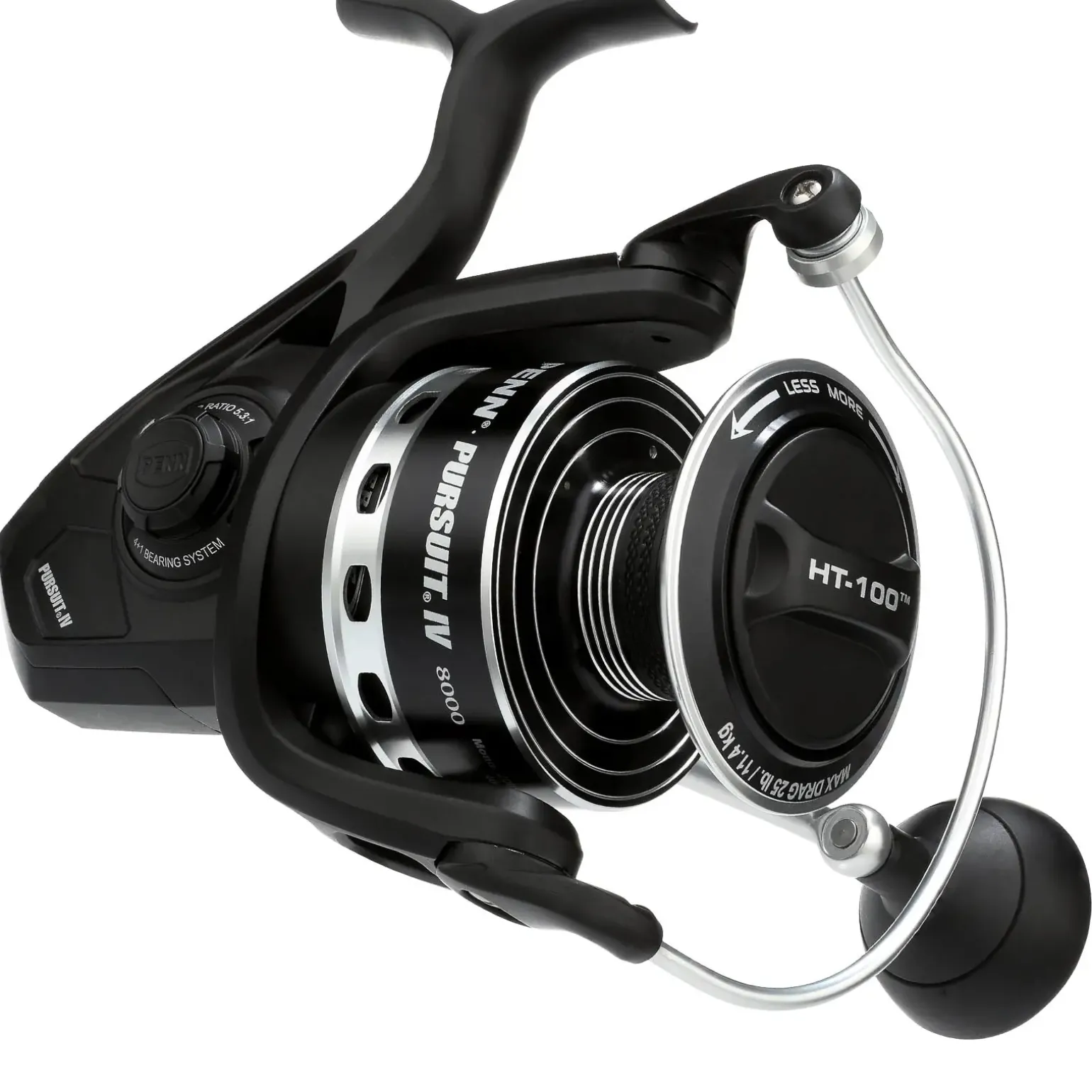 Die Penn Pursuit IV Rolle verfügt über ein ultraleichtes, korrosionsbeständiges Graphitgehäuse und ein leistungsstarkes HT-100 Bremssystem, was die Pursuit IV zu der richtigen Wahl für auch fürs Salzwasserangeln macht.