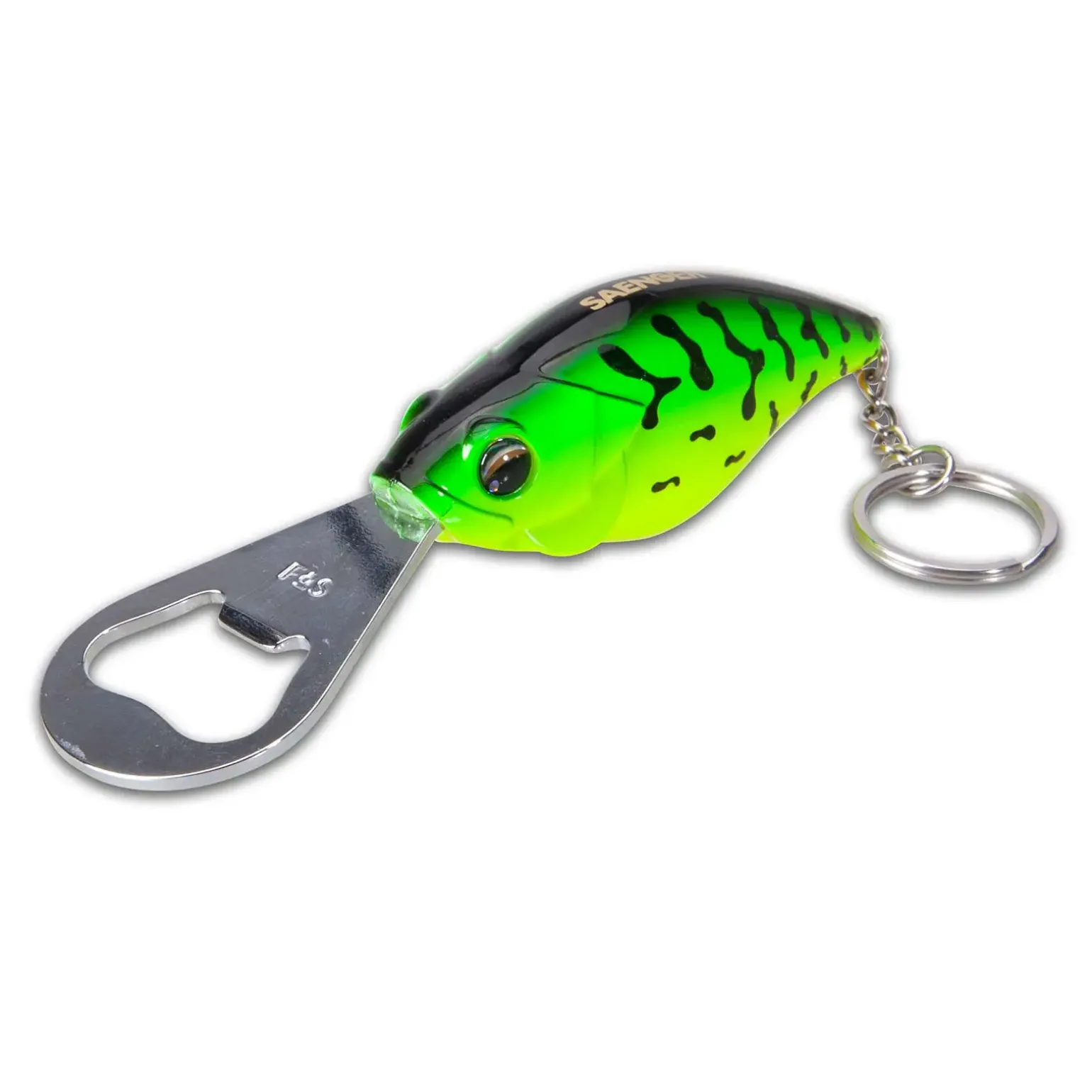 Praktischer Wobbler Schlüsselanhänger mit einem Flaschenöffner ausgestattet.