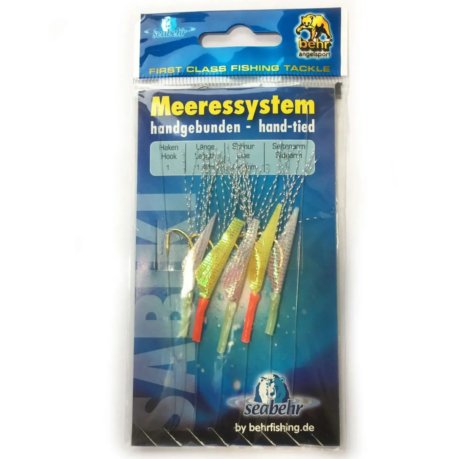 Beliebtes Heringsvorfach in hochwertiger Ausführung und mit hoher Fangqualität. Ausgestattet mit Glitzerfliegen am Goldhaken in Regenbogenfarben.