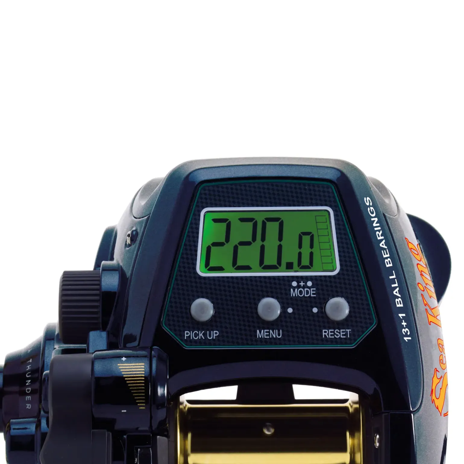 Konstruiert wurde die WFT Sea King 800 PR HP jedoch für Wassertiefen jenseits der 100m! Ihre hohe Einzugskraft und Geschwindigkeit sparen viel Zeit durch langes Aufkurbeln ohne Fisch. Je nach Situation und Belieben kann der Fisch mit oder ohne Motorkraft gelandet werden.
