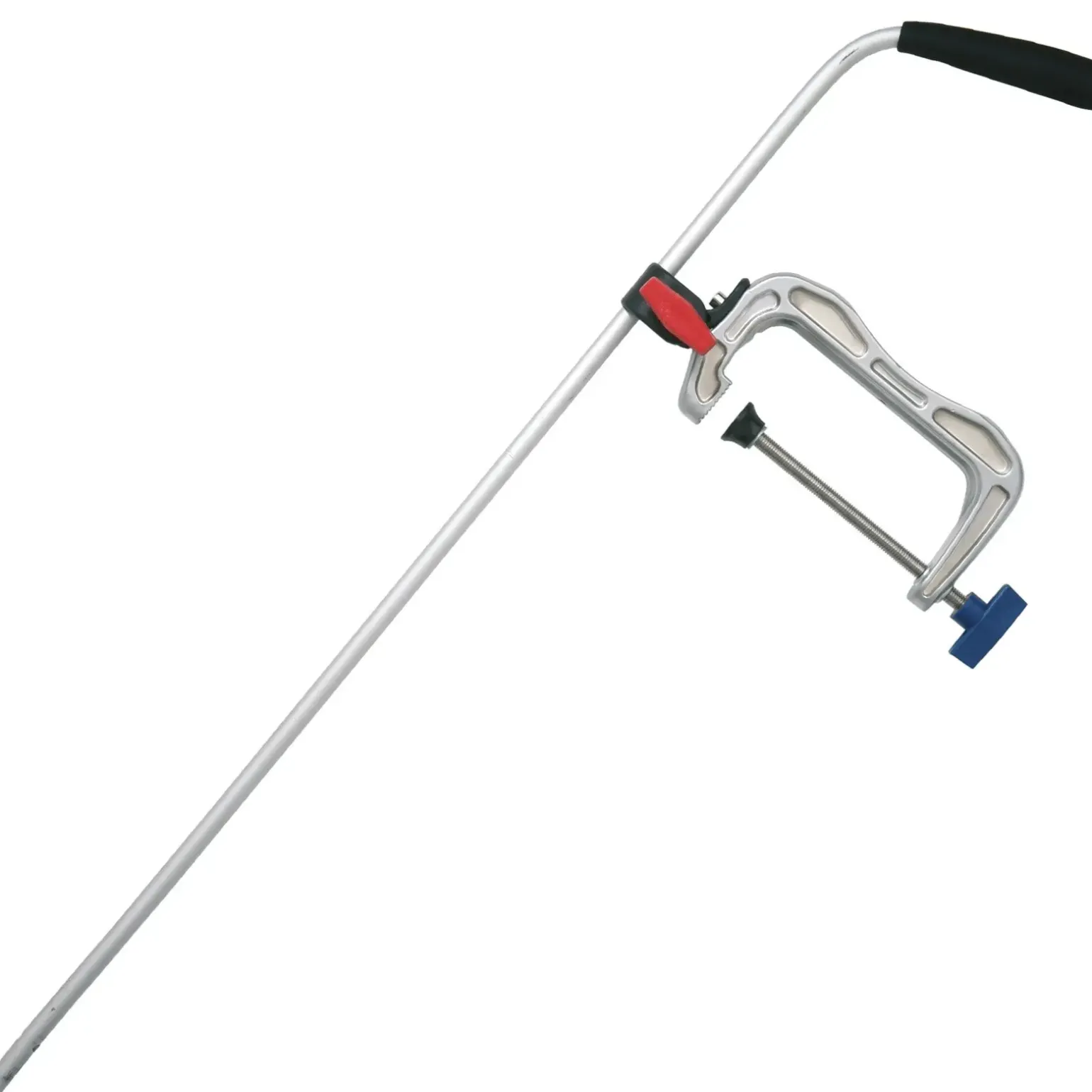 Geberstange mit extragroßer Öffnungsweite von 130 mm. Durch die große Öffnungsweise ist diese Geberstange auch für breitere Bootshecks und Seitenwände geeignet.Diese Geberstange ist am Handteil abgewinkelt. In der Praxis erkennt man somit an der Griffstellung die Stellung des Gebers unter Wasser. Ein tolles Detail.