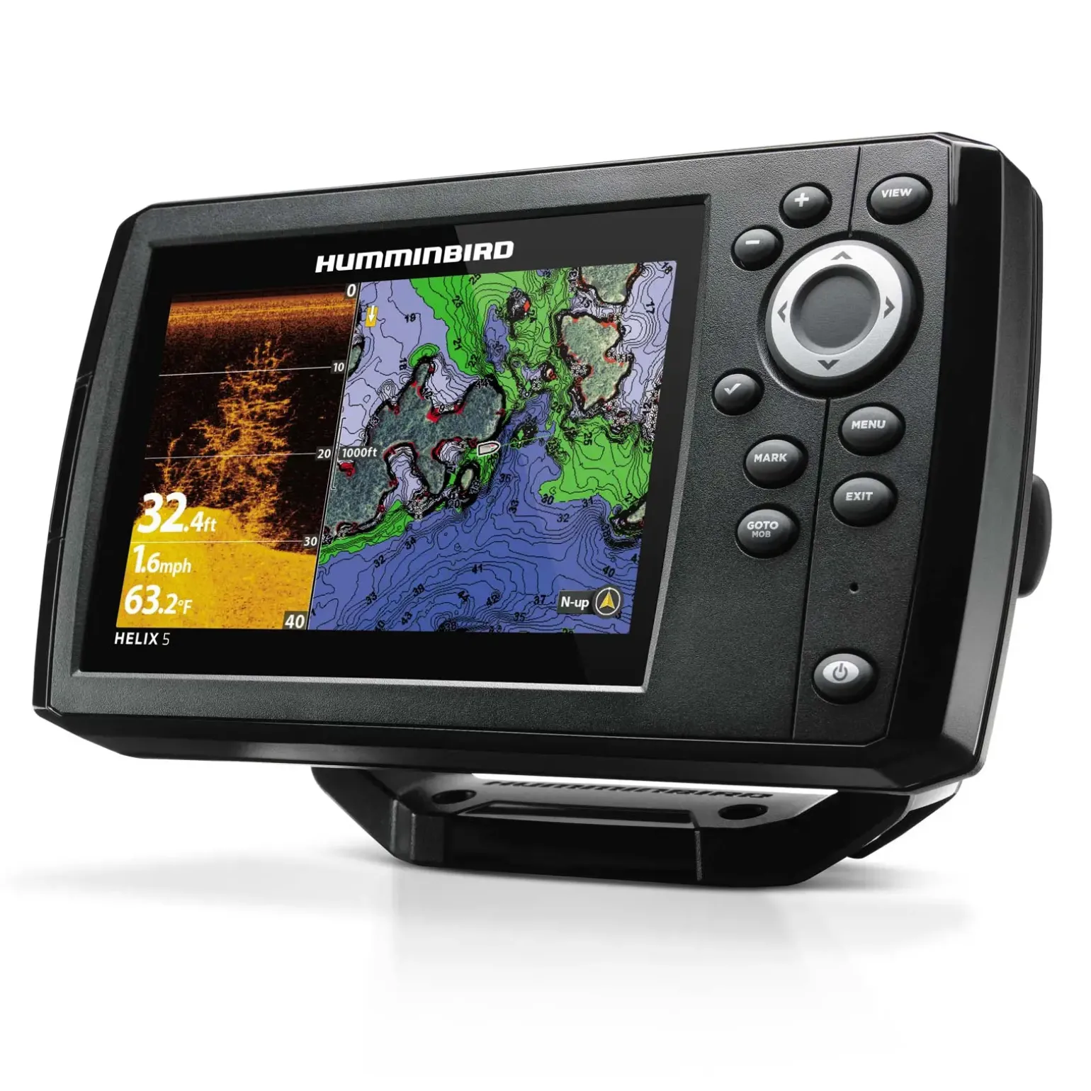DasHumminbird Helix 5 Chirp GPS DI G3DownImaging Echolot begeistert durch sein großes Farbdisplay und eine fotorealistische Aufnahme der Unterwasserwelt durch Down Imaging. Die GPS Antenne ist integriert.