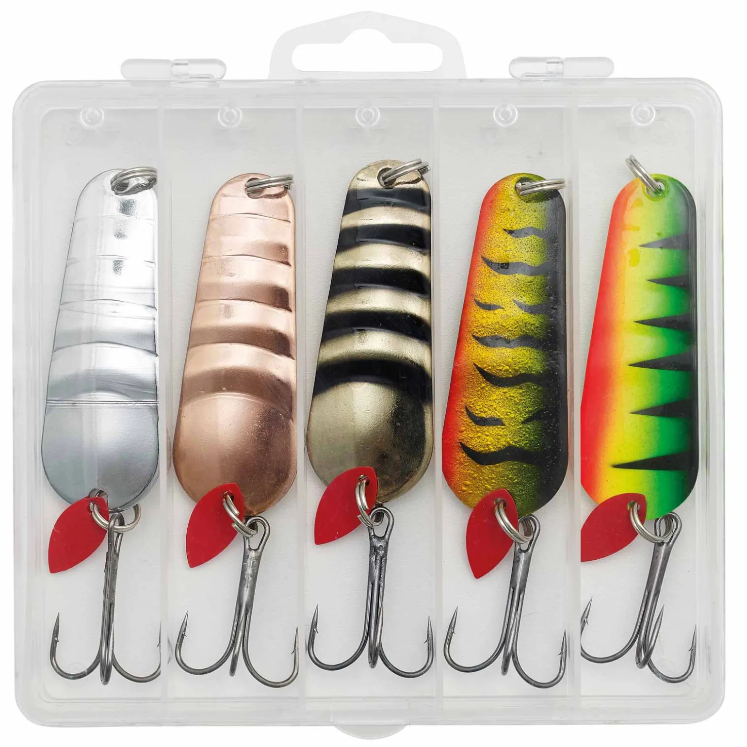 Bei diesem Angelset erwarten Sie 5 fangstarke Hechtblinker in bewährter Form und angesagten Farben.