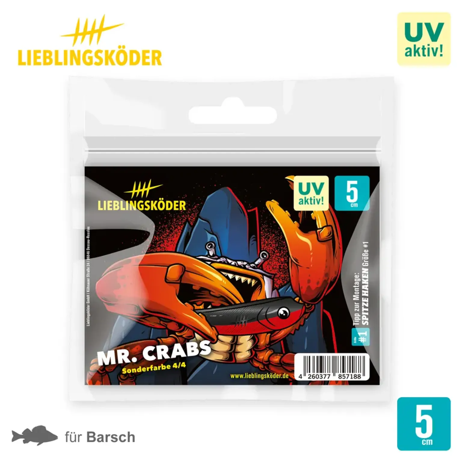 Der Lieblingsköder Gummifisch 5 cm ist besonders geeignet für Barsch-, Zander- und Hechtangler. Sein Design imitiert einen Beutefische, welche zur Hauptbeute jedes Räubers gehört. Das lässt ihn sehr natürlich oder verspielt erscheinen und er ist von einem echten Brutfisch kaum zu unterscheiden. Das große Auge betont den Kopf, der Barsche besonders reizt.