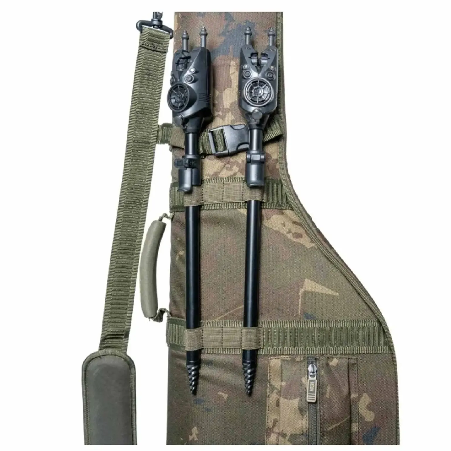Das Nash Subterfuge Hi Protect 2 Rod Skin ist eine strapazierfähige und wasserabweisende Rutentasche für zwei Ruten, die auch große Rollen und 50-mm-Ringe sicher verstaut. Sie verfügt über zwei „Kängurutaschen“ mit Schnallen und Gurten, um weitere Hi Protect 1 Rod Skins anzubringen, sodass bis zu vier Ruten transportiert oder Kescher und Retainer Schlingen außen befestigt werden können.