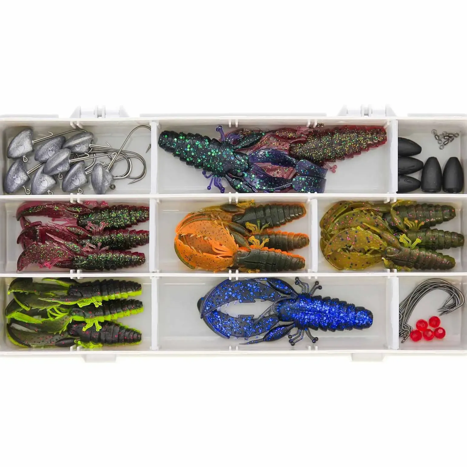 Westin Westin Crecraw Box 44Pcs Köder Komplettbox mit der perfekten Kombination aus Softbaits, passenden Haken, Jigköpfen, Gewichten und Kleinteilen. Einfach eine Box nehmen und losangeln! Gefüllt mit original Westin-Ködern und Zubehör für die beliebtesten Angeltechniken, unabhängig von der gewählten Ausrüstung oder Fischart. Mit unseren meistverkauften Westin-Gummiködern, viele davon in Sonderfarben, sind diese Boxen so konzipiert, dass sie eine breite Palette von Angelbedingungen abdecken. Diese neuen Boxen sind sowohl für das Angeln vom Ufer als auch vom Boot aus konzipiert. Das Angeln mit Craws, insbesondere mit dem CreCraw, liegt voll im Trend und ist für Barsche, Schwarzbarsche und Zander äußerst erfolgreich. In dieser Box findest du alle wichtigen Komponenten und Zubehörteile, um die fantastischen CreCraws zu fischen.