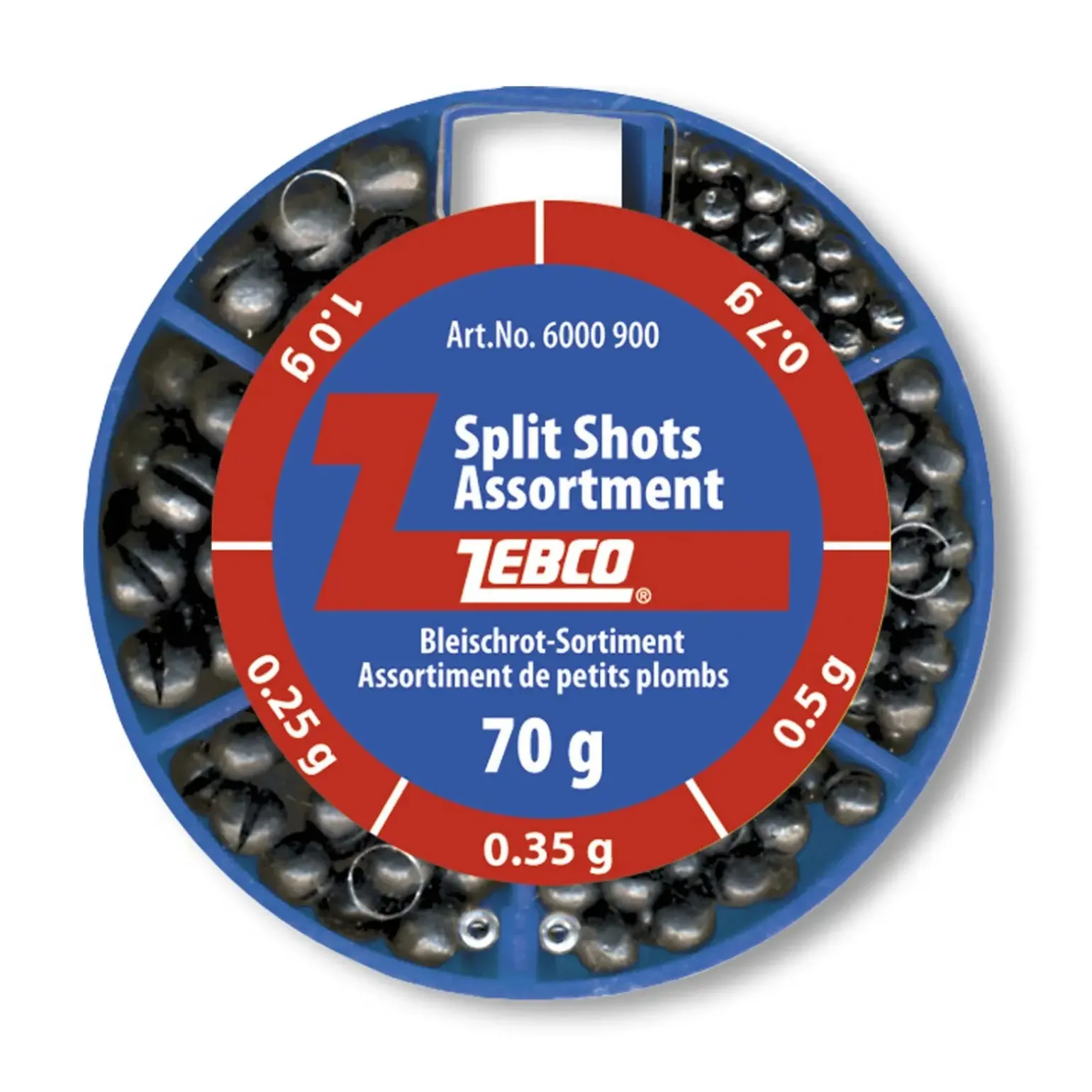 Hochwertiges Zebco Bleischrot-Sortiment 70g fein in verschiedenen Sortierungen zum austarieren von Posen-Montagen. Lieferung in einer praktischen Verteilerdose.